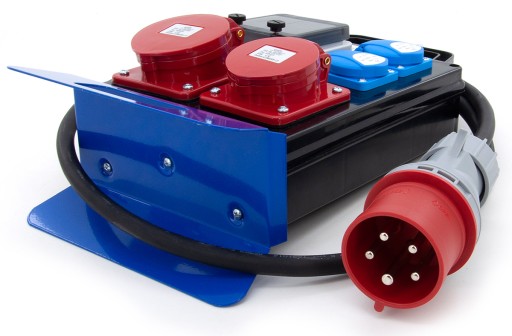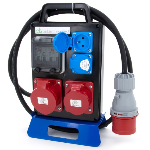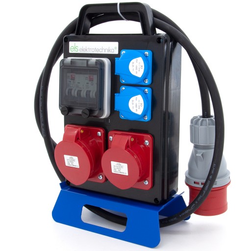 Rozdzielnica budowlana przenośna 16A/5 + 32A/5 + 2*GS 230V + zabezpieczenia + wtyczka 32A/5, 4PO21C11C1W2C