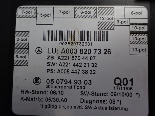МОДУЛЬ КОНТРОЛЛЕРА ДВЕРИ ЛЕВЫЙ ЗАДНИЙ ЛЕВЫЙ MERCEDES S500 W221 A0038207326