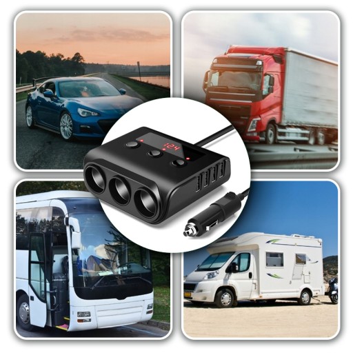 ✅W rozdzielaczu znajdują się 3 gniazda zapalniczki samochodowej oraz 4 gniazda USB
