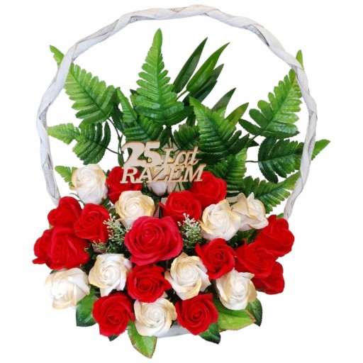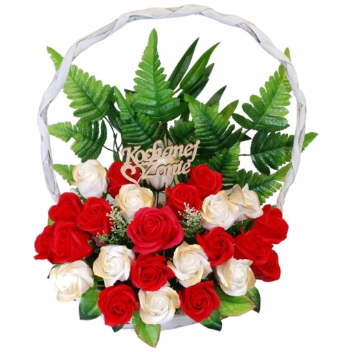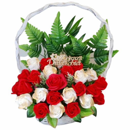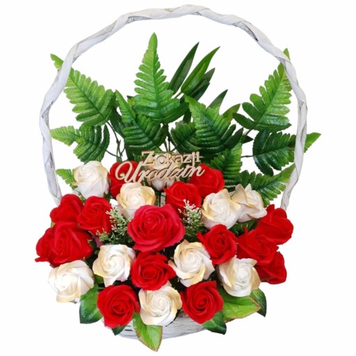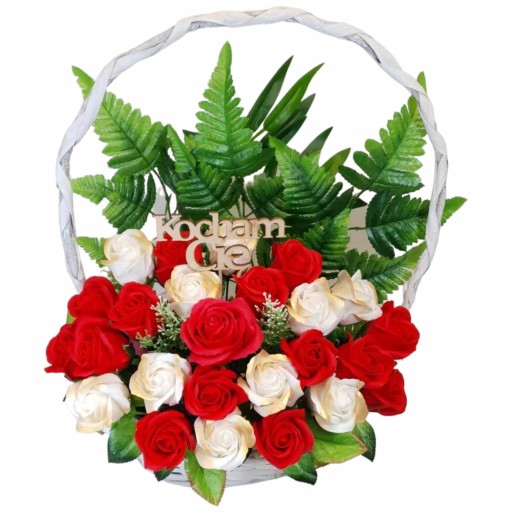 ❤️ Wyjątkowy prezent dla wyjątkowej osoby! Duży kosz z 25 cudownymi czerwonymi i biało złotymi różami mydlanymi - to niezwykła kompozycja, która przyniesie radość na wiele dni! ❤️