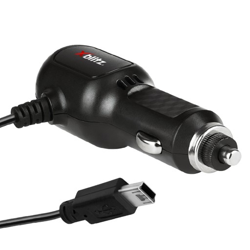 ORYGINALNA ŁADOWARKA XBLITZ DO KAMERY SAMOCHODOWEJ / REJESTRATORA SAMOCHODOWEGO GNIAZDO ZAPALNICZKI 12-24V 2.5A WTYK PROSTY mini USB DŁUGI KABEL 3.5m