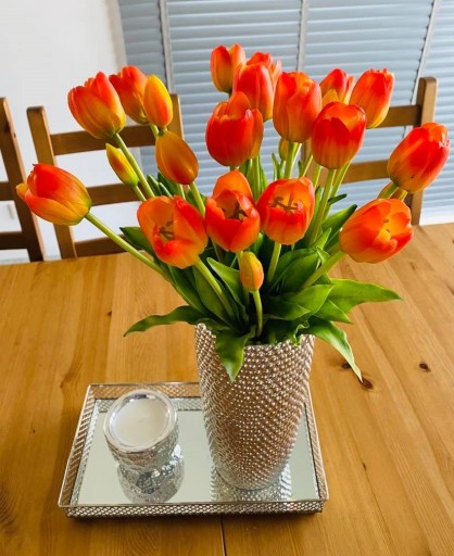 Silikonowe tulipany wyglądają praktycznie jak żywe, właśnie dlatego najlepiej wykorzystać je po prostu jako dekorację. Są bardzo przyjemne w dotyku. Przepięknie będą wyglądać w szklanym wazonie, postawionym na środku komody, stołu lub na parapecie. Ich największą zaletą jest odporność na uszkodzenia. Dodatkowo nie wymagają praktycznie żadnej pielęgnacji. Aby podkreślić ich autentyczność, do szklanego naczynia można wlać wody. Z kwiatami nic się nie stanie, a tulipany będą wyglądać jak świeżo zerwane