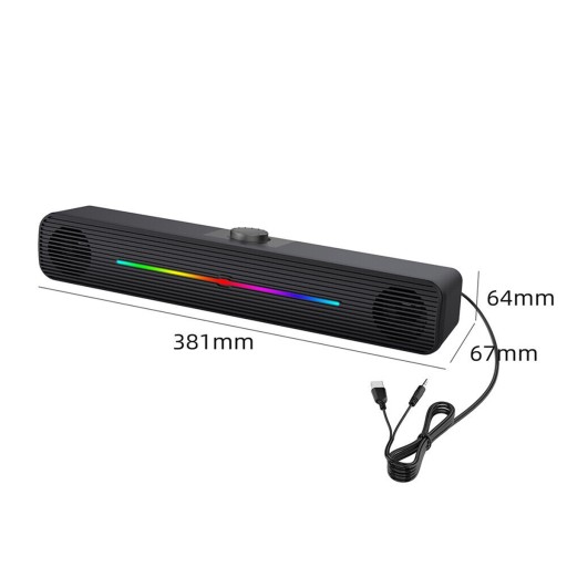 5.Szeroka kompatybilność: Soundbar może być używany z większością urządzeń ze standardowym gniazdem 3.5mm, takich jak komputer, komputer, laptop, tablet i smartfony. (Uwaga: wymagane zasilanie USB).