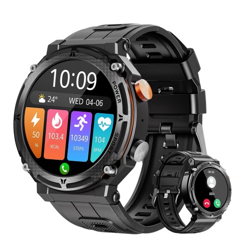 wodoodporne wojskowe inteligentne zegarki 5ATM dla mężczyzn z funkcją połączenia Bluetooth (odbieranie/wybieranie połączeń), taktyczny zegarek fitness na świeżym powietrzu o przekątnej 1,39 cala ze 111 trybami sportowymi dla systemu Android iOS