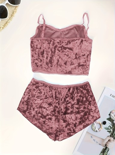 Seksowny, solidny dwuczęściowy zestaw, top na ramiączkach bez rękawów z dekoltem w kształcie litery V i wąskie spodenki