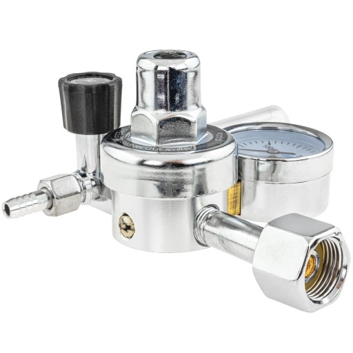 Reduktor z rotametrem. Nadający się do spawania w metodach MIG MAG TIG Reduktor przeznaczony jest do spawania w osłonie CO2 metodą MIG/MAG i TIG oraz innych prac spawalniczych. Dzięki zastosowanemu rotametrowi można ustawić dokładnie dawkowanie gazu. Doskonale znajduje zastosowanie w akwarystyce.