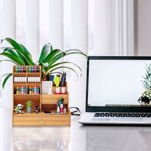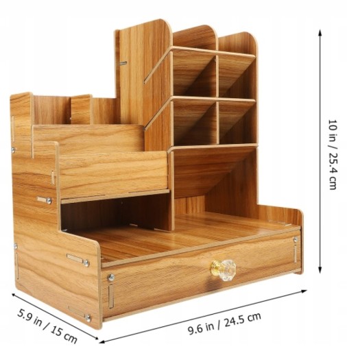 ✅Drewniany organizer na biurko to praktyczny i elegancki sposób na utrzymanie porządku na biurku. Składa się z kilku półek, szuflady i innych przegródek, które umożliwiają przechowywanie różnych przedmiotów, takich jak długopisy, ołówki, nożyczki czy klucze.