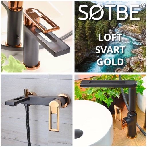 Czarno złota bateria prysznicowa ścienna jednouchwytowa SOTBE LOFT SVART GOLD LOF-B/G-SO-12568333 to połączenie głębokiej czerni, z dodatkiem modnego lekko różowego odcienia złota zwanego GOLDEN ROSE. Świeża minimalistyczna forma baterii z oszczędnym aeratorem NEOPERL® ma ciekawe w kształcie rozety, korpus o kubicznych kształtach, płaską wylewkę i cienki uchwyt. Podobnie jak inne baterie łazienkowe z serii LOFT, zwraca na siebie uwagę formą zainspirowaną minimalistycznym tchnieniem skandynawskiego stylu. Wszystkie baterie łazienkowe z serii LOFT ponadto łączy piękna geometria kształtów, akcentowana stabilnym prostym. Armatura ta gładko wpisze się wystrój łazienki o dowolnym charakterze – nowoczesnym, minimalistycznym, ale także stylizowanym LOFT