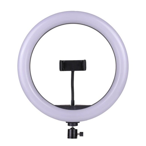 W centralnym miejscu lampy pierścieniowej umieszczony jest uchwyt na telefon komórkowy. Posiada on elastyczną przedłużkę dzięki której można ustawić swój smartfon pod wieloma kątami. Jest to bardzo przydatne dla osób wykonujących selfie (np. prezentując wykonany makijaż), ale również do fotografowania produktów i martwej natury.