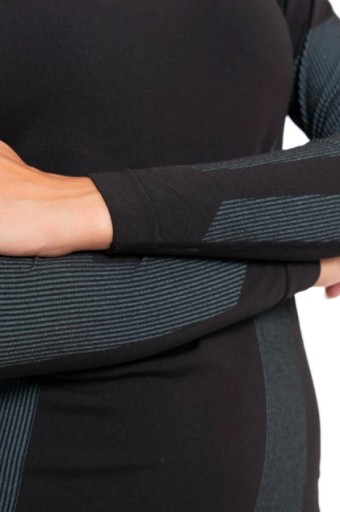 Innowacyjne właściwości termoaktywne materiałów użytych do produkcji kompletu pozwalają utrzymać optymalną temperaturę ciała. W chłodne dni bielizna skutecznie zatrzymuje ciepło, jednocześnie odprowadzając nadmiar wilgoci, utrzymując skórę suchą i komfortową.