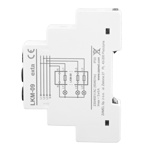 Moduł wskaźnika zasilania z zabezpieczeniem bezpiecznikowym LKM-09-40 przeznaczony jest do prezentacji obecności napięcia zasilającego na każdej z faz. Może być również zastosowany do zabezpieczenia odbiorników elektrycznych przed skutkami wzrostu prądu ponad dopuszczalną wartość, ograniczaną za pośrednictwem zastosowanych bezpieczników topikowych. Urządzenie doskonale sprawdzi się nawet