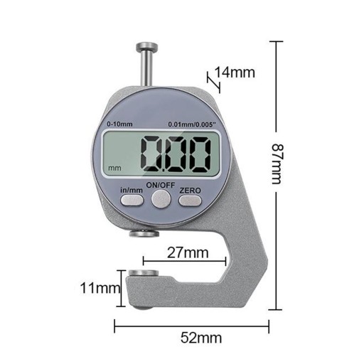 WYŚWIETLACZ CYFROWY: Cyfrowe mierniki grubości są wyposażone w duży cyfrowy wyświetlacz, łatwiejszy do odczytania.