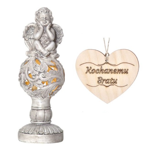 ZNICZ dla BRATA ANIOŁ STRÓŻ SOLARNY do ogrodu lub na grób + zawieszka Kochanemu Bratu