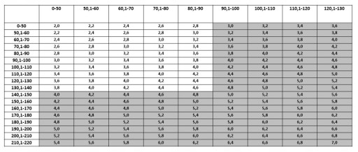 POLA ZAZNACZONE W TABELI KOLOREM SZARYM OZNACZAJĄ WYSYŁKĘ W ELEMENTACH DO SAMODZIELNEGO ZŁOŻENIA.