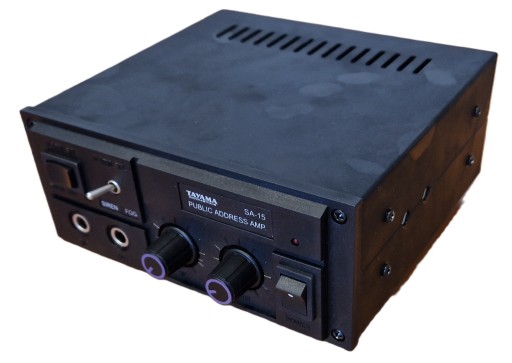 Wzmacniacz z dwukanałowym mikserem oraz syreną i klaksonem. idealnie nadaje się do auta jako źródło dźwięku do zewnętrznego głośnika np. do foodtruck-ów, samochodów z lodami itp.