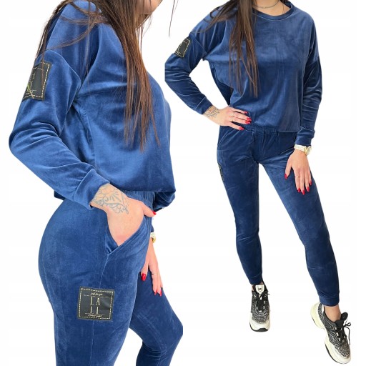 DS77 ВЕЛЮРОВЫЙ СПОРТИВНЫЙ КОСТЮМ С ЛОГОТИПОМ ТЕМНО-СИНИЙ Р.XL