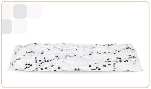 Nasze worki 4CONVY zostały stworzone z innowacyjnej folii z kompresją 3D, dzięki której puste przestrzenie wypełniają się jak woda. Oznacza to, że po odciągnięciu powietrza worek nie niszczy struktury tkanin.