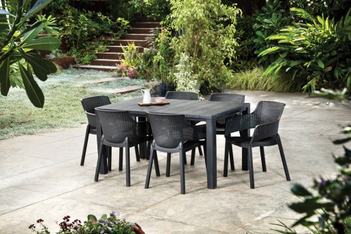 Styl zestawu ogrodowego łączy w sobie nowoczesne i klasyczne elementy, dzięki temu świetnie wygląda w każdym ogrodzie. To idealny komplet jadalniany do wspólnego biesiadowania przy grillu oraz imprezy rodzinne.