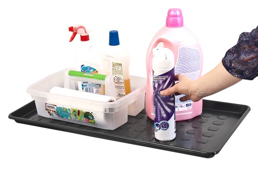 Tackę można położyć w dowolnym miejscu gdzie pracujesz: na stole, na blacie lub na krzesełku, nie przepuszcza wilgoci i zajmuje niewiele miejsca. Dodatkowo zbiera nadmiar wody dzięki 3 cm rantowi podczas pracy woda nie rozlewa się na zewnątrz.