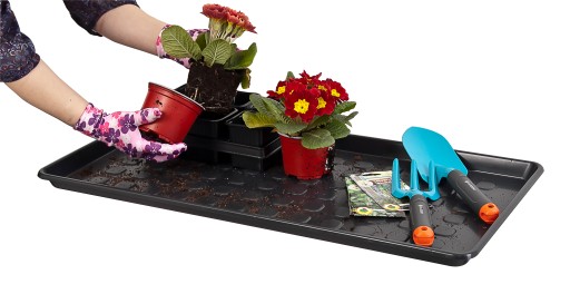 Podstawka umożliwia wygodne przesadzanie i rozsadzanie roślin w dowolnym miejscu w domu na balkonie, w ogrodzie, na tarasie pozostawiając podłogę nieskazitelnie czystą