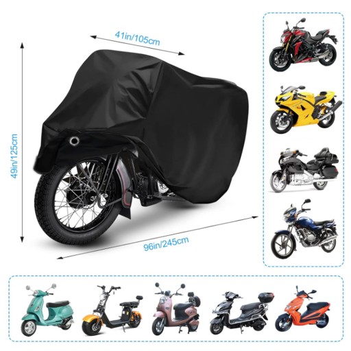 🛵Uniwersalny rozmiar: Pokrowiec motocyklowy ma wymiary 245 * 105 * 125 cm, odpowiednie dla większości motocykli. Przed zakupem należy zmierzyć swój motocykl.
