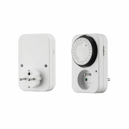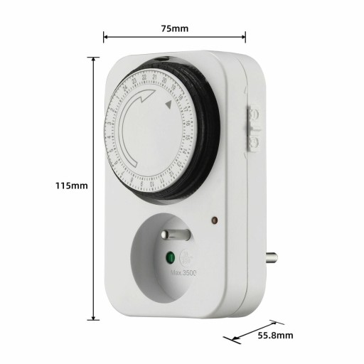 Oszczędność dla Twojego portfela i dla planety! Programator czasowy do użytku wewnętrznego Lexman pozwala na programowanie działania oświetlenia, ekspresu do kawy, grzejnika lub innych urządzeń elektrycznych o maksymalnej mocy 3500W. W tym celu podłącz programowalne gniazdo do sieci i podłącz bezpośrednio swoje urządzenie. Gniazdo umożliwia włączanie i wyłączanie światła o określonych porach w ciągu dnia. Godziny pracy można łatwo wybrać za pomocą wciskanych wycięć na tarczy. 1 ząbek to 15 min. Włącznik i lampka kontrolna pozwolą w każdej chwili włączyć lub zatrzymać funkcję programowania.