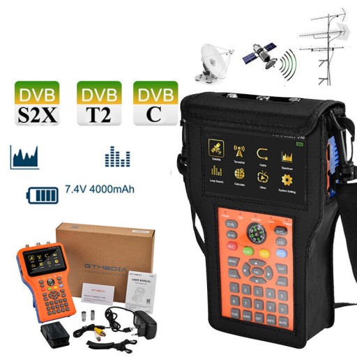 GTMEDIA V8 Finder Pro to ręczny miernik combo kompatybilny z DVB-S2X/S2/S/T2/T/C/ATSC-C i MPEG-2/4 H.264/H.265 (10-bit). Dzięki kompaktowym rozmiarom, lekkiej konstrukcji, intuicyjnemu interfejsowi użytkownika, długiej żywotności baterii i bogatemu zestawowi funkcji, szukacz sygnału zapewnia wszystkie funkcje potrzebne do instalacji i weryfikacji usług telewizji cyfrowej, sygnałów antenowych i sygnałów kablowych w budynkach mieszkalnych lub wielorodzinnych.