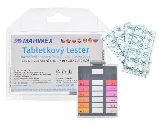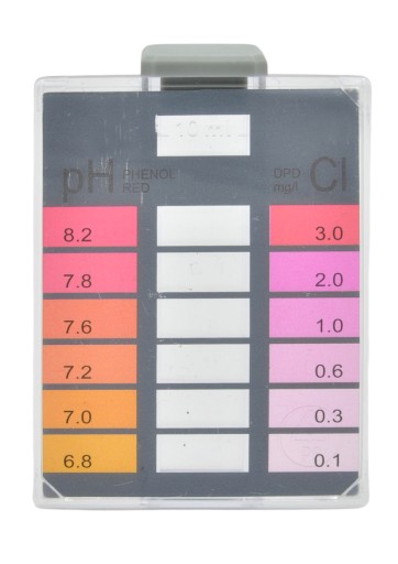 Do określenia wartości pH wody (20 testów) oraz pomiaru aktywnego chloru (20 testów).