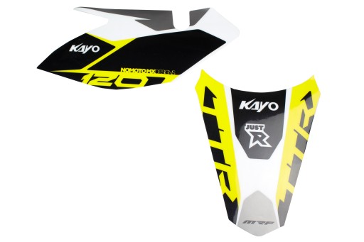 Nowa, kompletna okleina do motocykla PIT BIKE marki MRF model 120 TTR e-start z roku 2023.