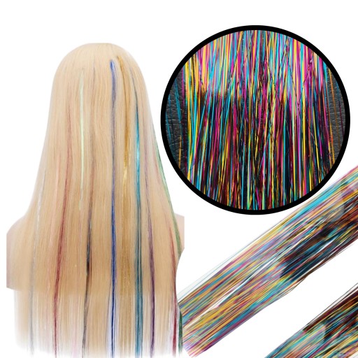 KOLOROWE WŁOSY PASEMKA LŚNIĄCE NITKI DO WŁOSÓW 90cm MULTIKOLOR