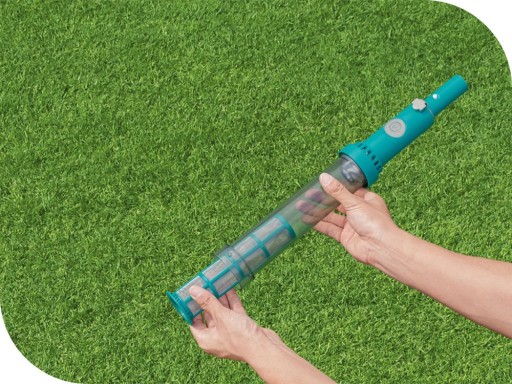 Słupek można przymocować do większości skimmerów lub główek szczotek (brak w zestawie), dzięki czemu można używać go do wielofunkcyjnego czyszczenia. Przezroczysty pojemnik na śmieci pozwala zobaczyć, kiedy odkurzacz wymaga opróżnienia.