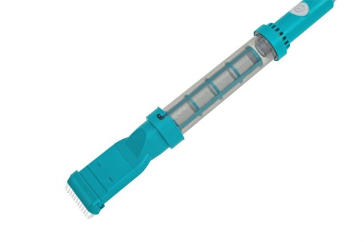 Słupek można przymocować do większości skimmerów lub główek szczotek (brak w zestawie), dzięki czemu można używać go do wielofunkcyjnego czyszczenia. Przezroczysty pojemnik na śmieci pozwala zobaczyć, kiedy odkurzacz wymaga opróżnienia.