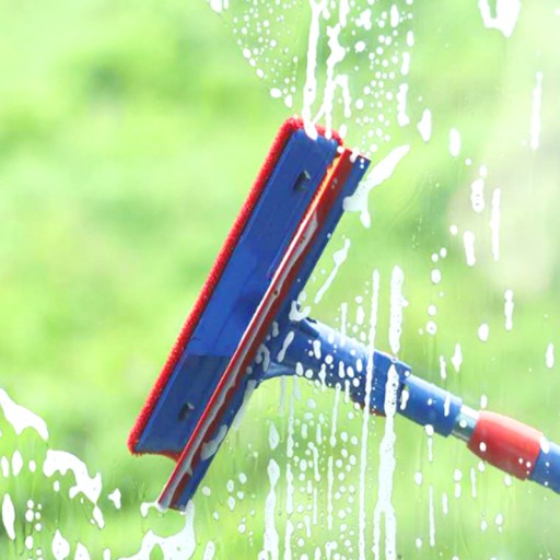 Wysokiej jakości myjka ze ściągaczką oraz odkręcanym, drewnianym trzonkiem przeznaczona do mycia okien oraz szyb samochodowych.