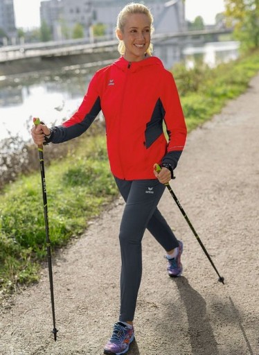 - kurtka wspaniale się sprawdza w dyscyplinach - bieganie, nordic walking