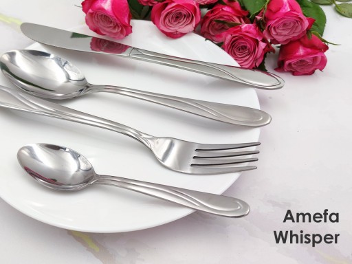 Sztućce Whisper wykonano z wysokiej jakości stali nierdzewnej chromowo-niklowej 18/0 o wysokim połysku. Ergonomiczna rękojeść zdobiona jest falistym wzorem.