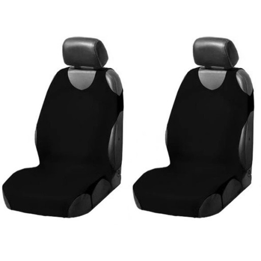 Komplet dwóch wysokiej jakości koszulek / pokrowców w kolorze CZARNYM przeznaczonych na przednie fotele samochodowe.
