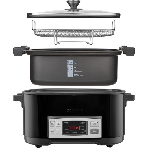 Wolnowar do przyrządzania posiłków Sencor SPR 5508BK o mocy 1350 W z niezawodną misą o objętości 6 l, z którą łatwo w pyszny sposób ugościć całą rodzinę