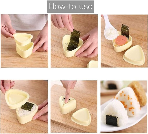 - na dole foremki znajduje się trójkątny przycisk, przy niewielkim nacisku sushi można wyjąć