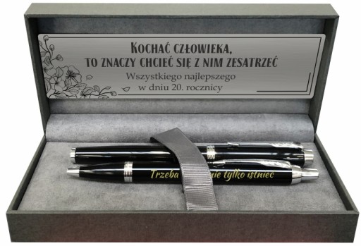 DO ZESTAWU DOŁĄCZANA JEST TABLICZKA SREBRNA LUB ZŁOTA DOKLEJONA DO PUDEŁKA (PATRZ ZDJĘCIE GŁÓWNE), NA KTÓREJ WYGRAWERUJEMY DOWOLNĄ TREŚĆ - MOŻESZ RÓWNIEŻ ZAINSPIROWAĆ SIĘ I UŻYĆ NASZYCH WZORÓW, Z UŻYCIEM WŁASNYCH DANYCH