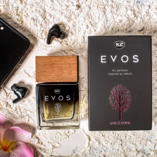 Perfumy do samochodu K2 z serii EVOS to inspirowana naturą, niezwykła kompozycja wyjątkowych nut zapachowych, zaprojektowana z myślą o wnętrzach nowoczesnych aut.