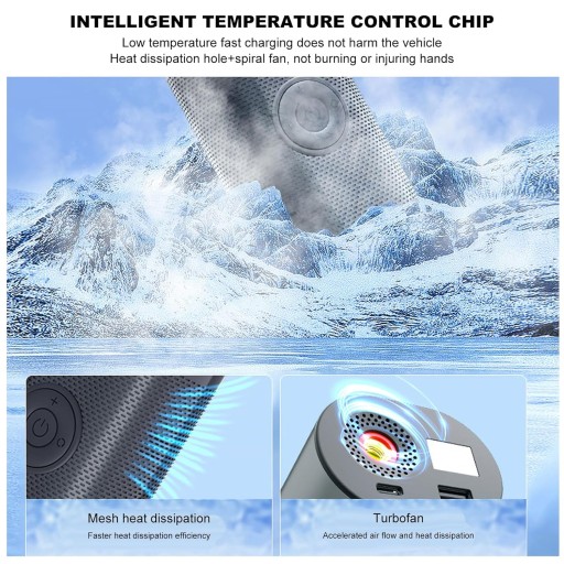 Wbudowany precyzyjny chip wykrywający ciśnienie, umożliwia automatyczne napełnianie i zatrzymuje się po osiągnięciu żądanego ciśnienia. Inteligentny układ kontroli temperatury zapewnia szybkie ładowanie w niskiej temperaturze, nie powodując żadnych uszkodzeń pojazdu.