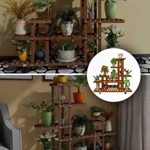 ✅WIELOPOZIOMOWE PÓŁKI: Stojak jest wyposażony w półki o różnych wysokościach, co daje Ci swobodę w rozmieszczeniu roślin. Możesz stworzyć piękne i zróżnicowane kompozycje roślinne, tworząc w ten sposób wyjątkową atmosferę w Twoim domu, na balkonie lub tarasie.