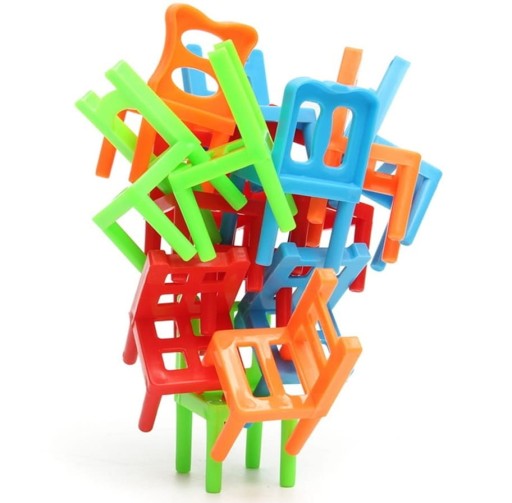 - Następnie gracze kolejno dokładają swoje krzesełka do konstrukcji