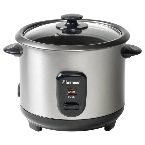 Bestron ARC280 to urządzenie do gotowania ryżu i garnek do gotowania na parze w jednym. Gotuje szybko iw pełni automatycznie wszystkie rodzaje ryżu, a także przyrodę, basmati, risotto, dziczyznę, ryż sushi itp. Dzięki dodatkowemu dodatkowi do gotowania na parze (O 26,5 cm) możesz delikatnie gotować warzywa, ryby, pierogi itp. ARC280 ma maksymalną pojemność 2100 g ryżu, co odpowiada około 14 filiżankom i wystarcza na 13-15 osób. Funkcja utrzymywania ciepła utrzymuje ryż w idealnej temperaturze przez dłuższy czas. Bezpieczeństwo zapewniają dwa wskaźniki świetlne do gotowania i utrzymywania ciepła. Operacja jest bardzo prosta, a automatyczne wyłączanie sprawia, że korzystanie jest jeszcze bardziej wygodne. Przez szklaną pokrywę z otworem wylotowym pary proces gotowania jest zawsze widoczny. Wewnętrzna wanna jest nieprzywierająca i ma wskaźnik poziomu wody. W celu łatwiejszego czyszczenia wewnętrzna wanna jest przystosowana do mycia w zmywarce.