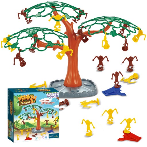 Gra Zręcznościowa Latające Małpki od marki WOOPIE o wspaniała zabawa dla całej rodziny, poprawiająca zręczność i trzymająca w napięciu. Połóż małpkę na wyrzutni i wystrzel ją na koronę drzewa. Gdy małpka na nim zawiśnie zdobywasz punkt. Wygrywa osoba, której uda się zawiesić więcej małpek.