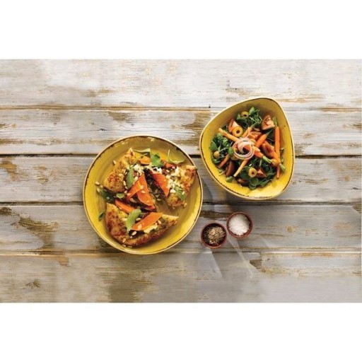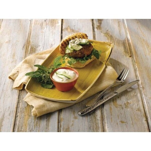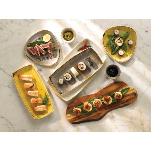 Porcelanowa salaterka o trójkątnych kształcie i średnicy 24,8 cm, z serii Stonecast, w kolorze Mustard Seed Yellow marki Churchill. Wykonana z trwałej porcelany Vitrified, higienicznej i łatwej w utrzymaniu czystości, odpornej na szoki termiczne. Szkliwiona glazurą ekologiczną Ecoglaze, która zapewnia trwałość podczas użytkowania.