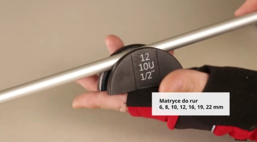 - nylonowe matryce do gięcia rur 6, 8, 10, 12, 16, 19, 22 mm (7 szt.)