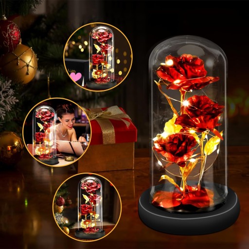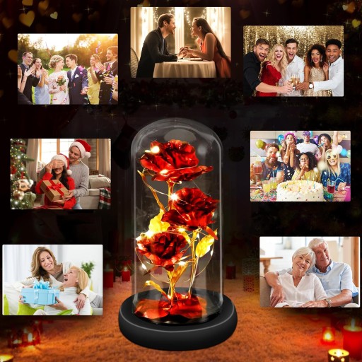 🎁 Szklana kopuła wykonana jest z wysokiej jakości szkła borokrzemowego dla promiennego blasku i krystalicznie czystego widoku, aby w pełni pokazać piękno róży w 360 stopniach. Czarna drewniana podstawa przywraca uczucie rustykalności. Róże ze światłem LED są wykonane ze specjalnego materiału, który nigdy nie zwiędnie ani nie umrze.