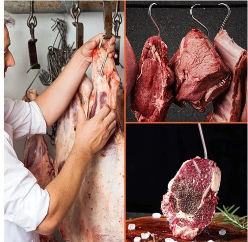 HAKI do zawieszenia mięsa w wędzarniach. Wykonane z drutu o średnicy 3 mm, co pozwala na bezpieczne zawieszenie mięsa. Wytrzymałość każdego haka jest dostosowana do większych kawałków mięsa. Każdy z haków został dodatkowo zaostrzony co ułatwia zagłębienie go w mięsie. Konstrukcja ze stali nierdzewnej zapewnia wysoką trwałość i jest łatwa w czyszczeniu.