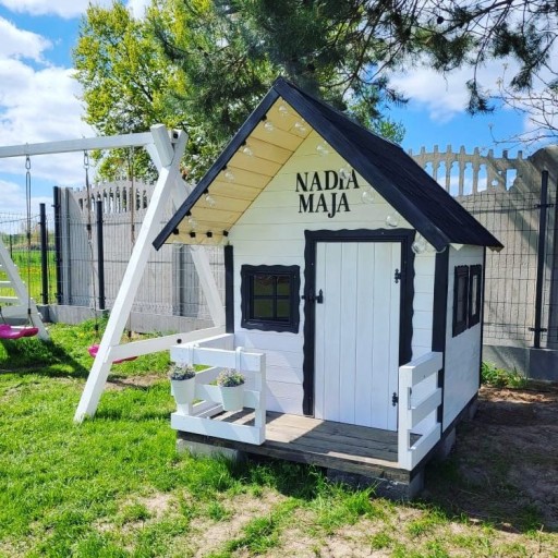 Bez ukrytych opłat. Dostarczony domek po złożeniu będzie taki jak na zdjęciu, gotowy do użycia. Otrzymasz pomalowane elementy, komplet śrub, gont, zawiasy.
